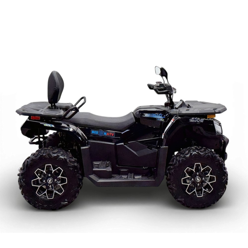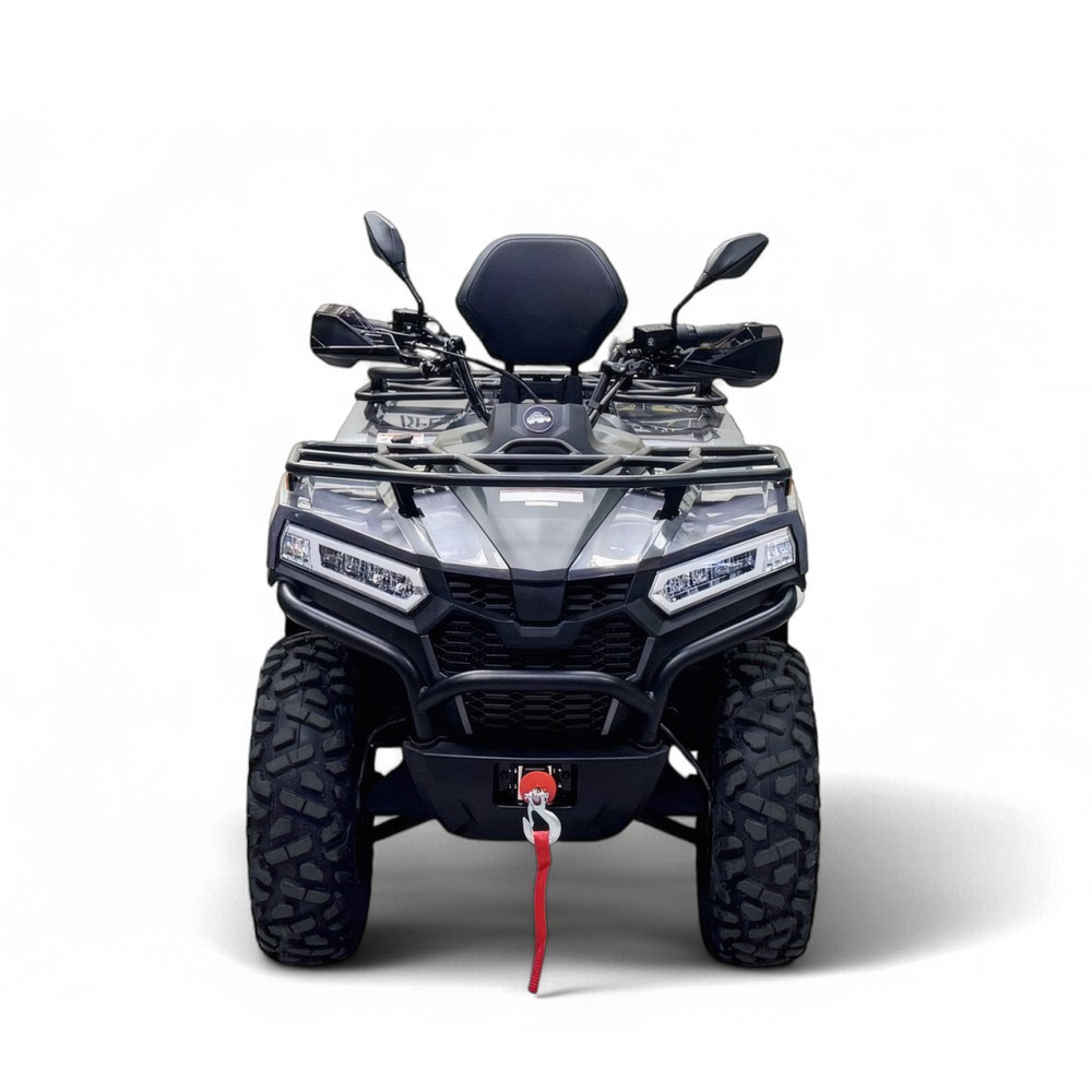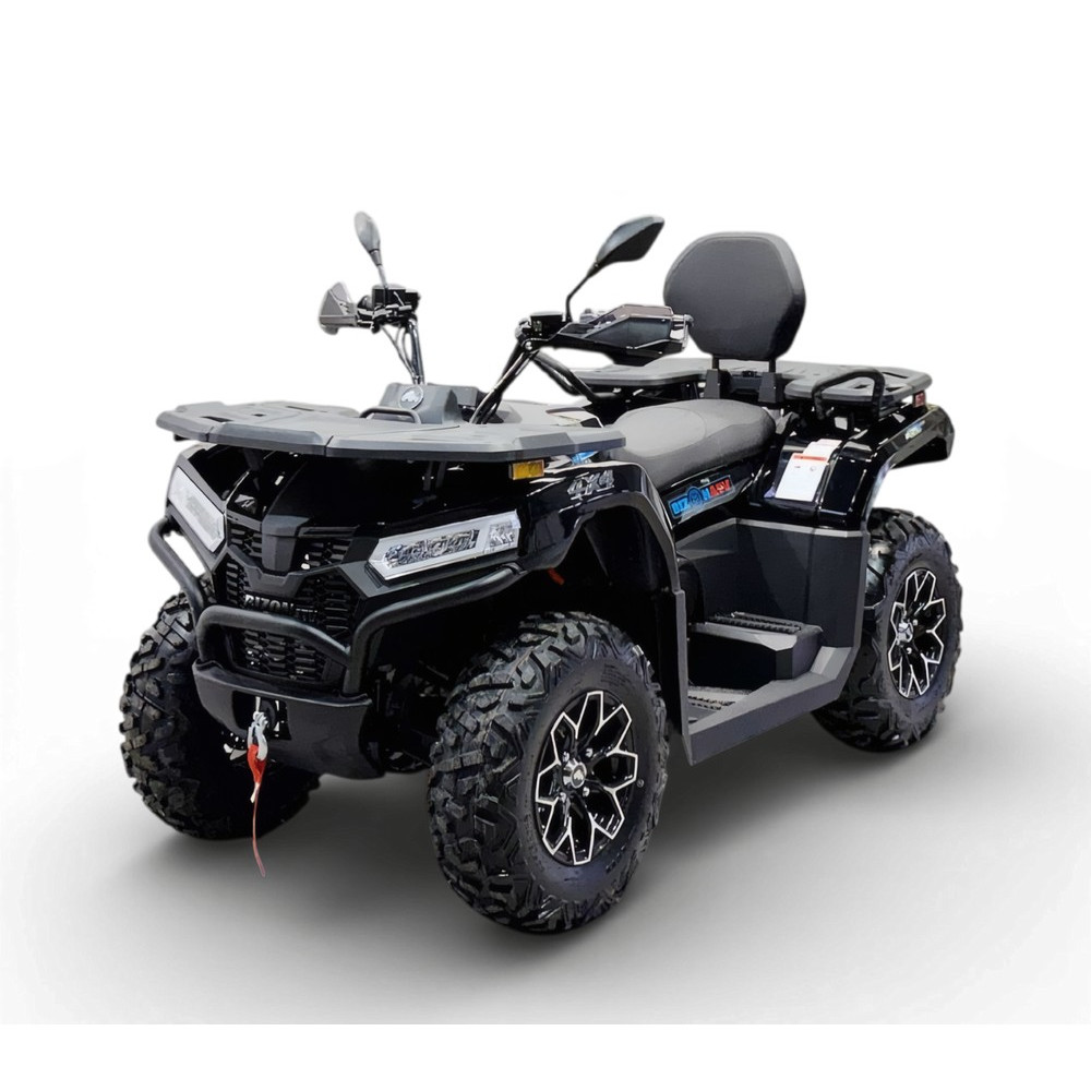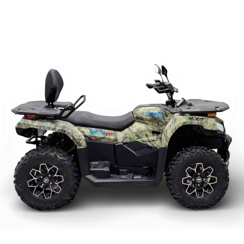 В основе мощная электрическая установка с номинальной мощностью 15 кВт и пиковыми значениями до 30 кВт. Такой запас энергии даёт мгновенную тягу, уверенный разгон и стабильную работу под нагрузкой. Литий-железо-фосфатный аккумулятор (LiFePO4) на 76,8 В и 105 Ah обеспечивает пробег до 70 км и отличается высокой надёжностью, безопасностью и длительным сроком службы. Быстрая зарядка за 2–3 часа позволяет активно использовать квадроцикл без долгих пауз.