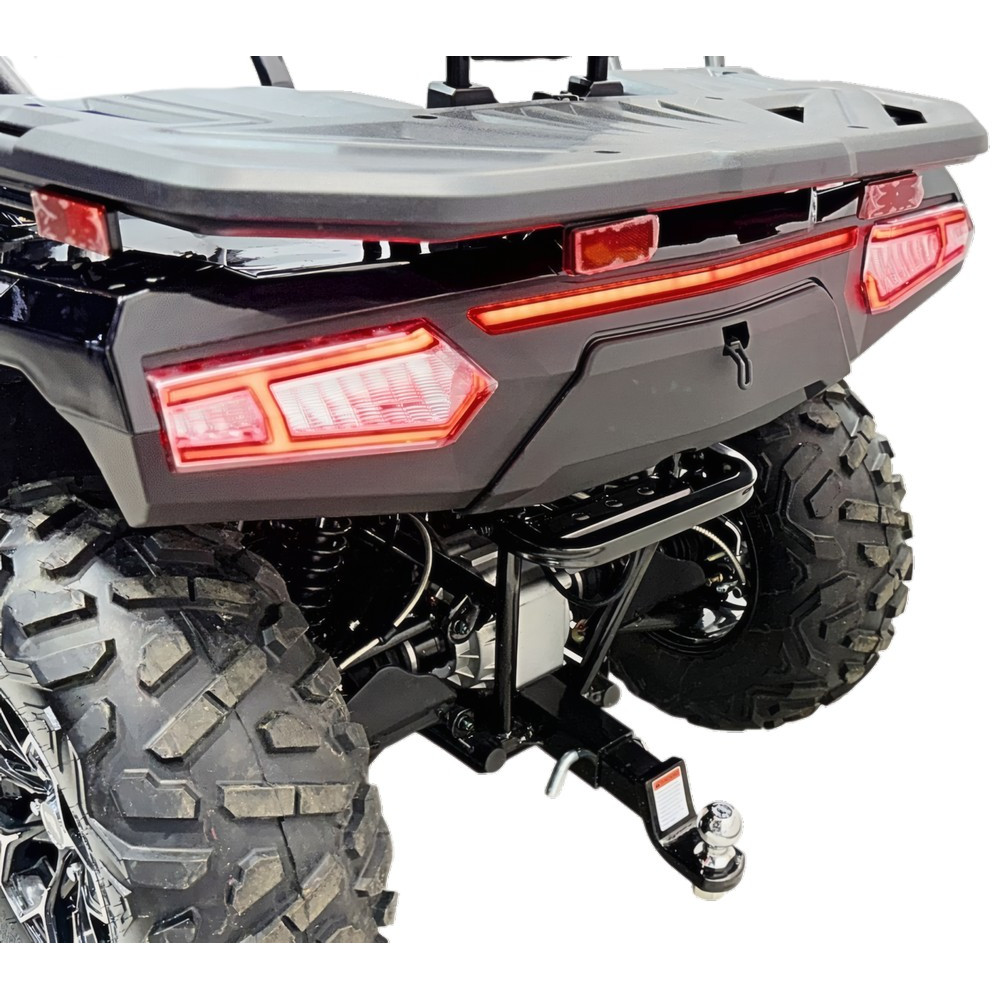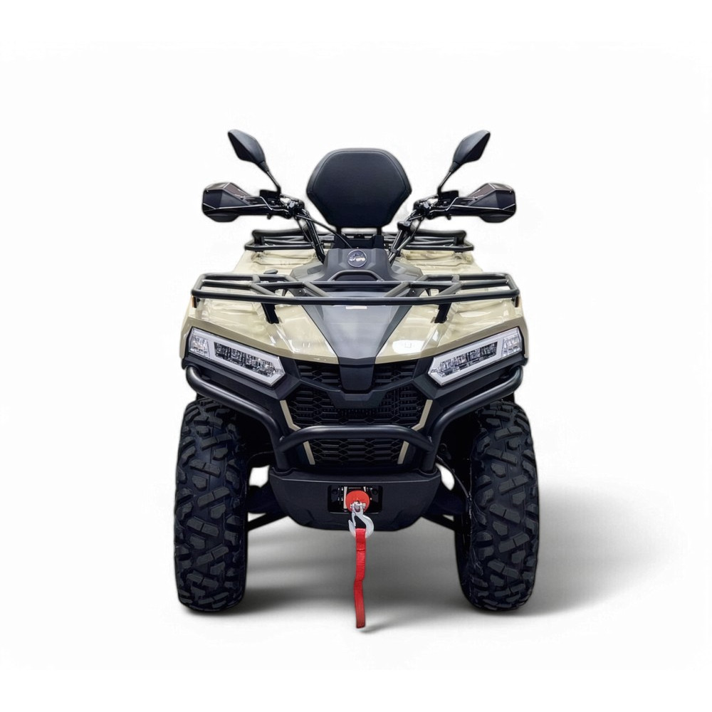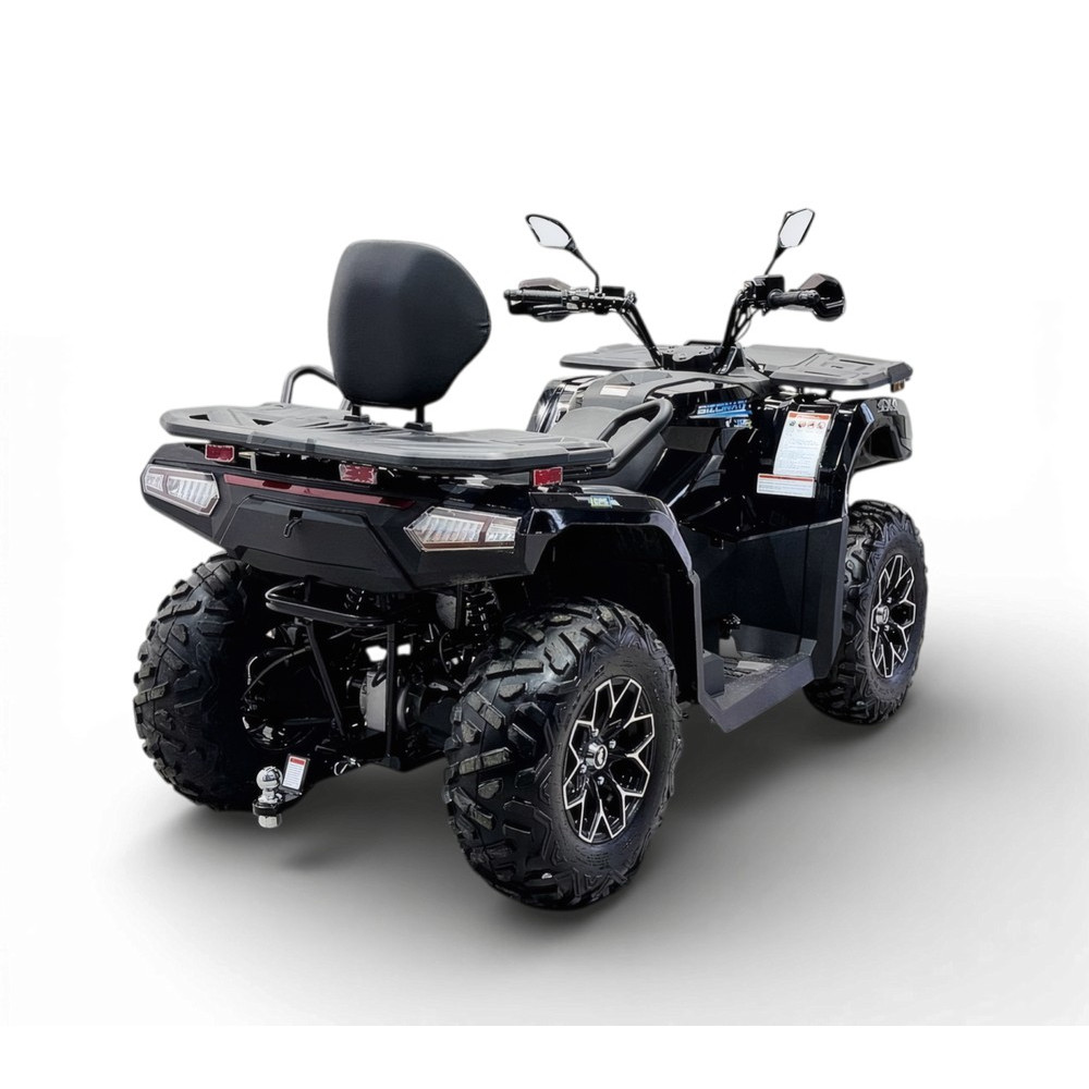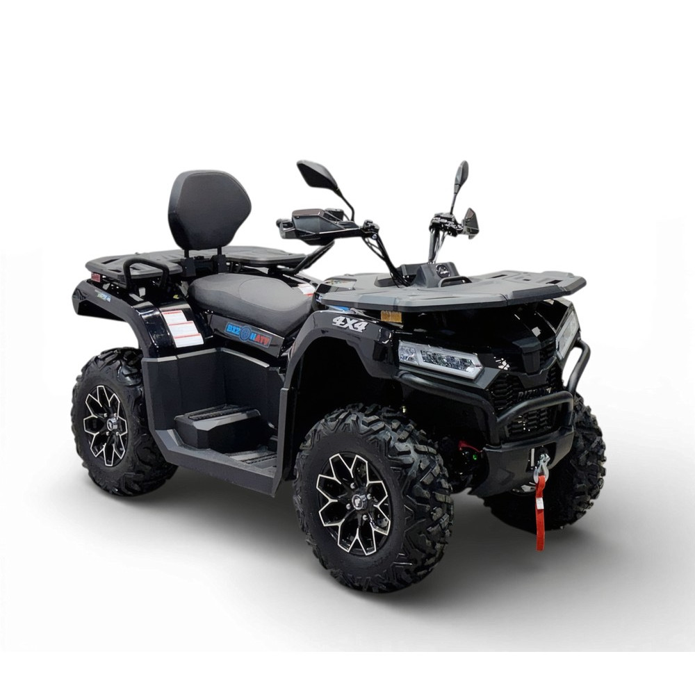 В основе мощная электрическая установка с номинальной мощностью 15 кВт и пиковыми значениями до 30 кВт. Такой запас энергии даёт мгновенную тягу, уверенный разгон и стабильную работу под нагрузкой. Литий-железо-фосфатный аккумулятор (LiFePO4) на 76,8 В и 105 Ah обеспечивает пробег до 70 км и отличается высокой надёжностью, безопасностью и длительным сроком службы. Быстрая зарядка за 2–3 часа позволяет активно использовать квадроцикл без долгих пауз.
