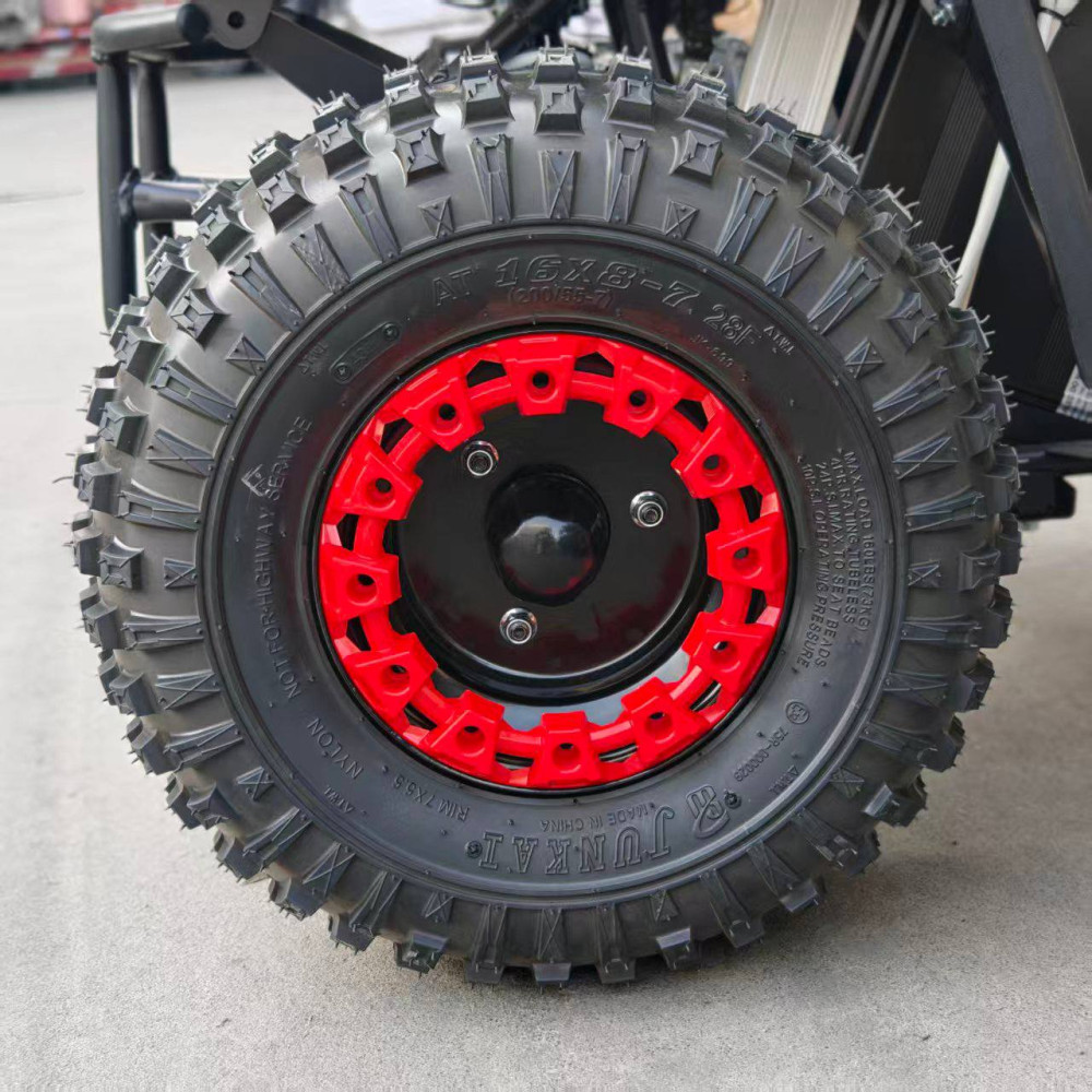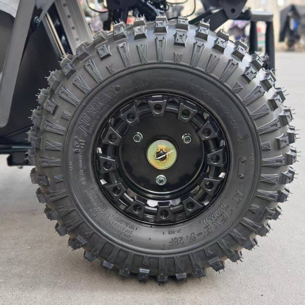 Внутри надёжный электродвигатель с мощностью 800 Вт, аккумулятор с защитой от перегрузки, и простая система пуска с ключа. Установлены дисковые тормоза, передняя и задняя подвеска, LED-фара для катания в вечернее время. А прорезиненные покрышки дают уверенное сцепление с дорогой.