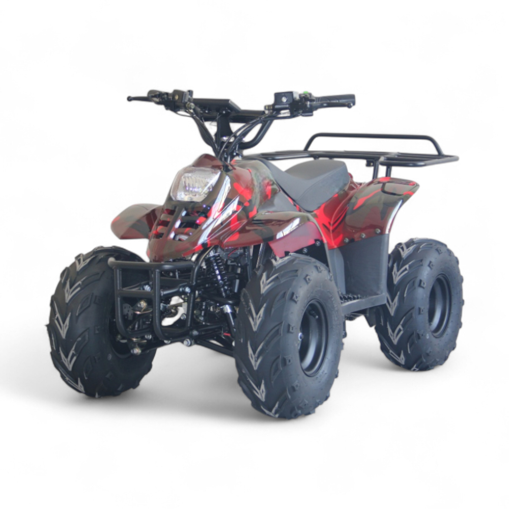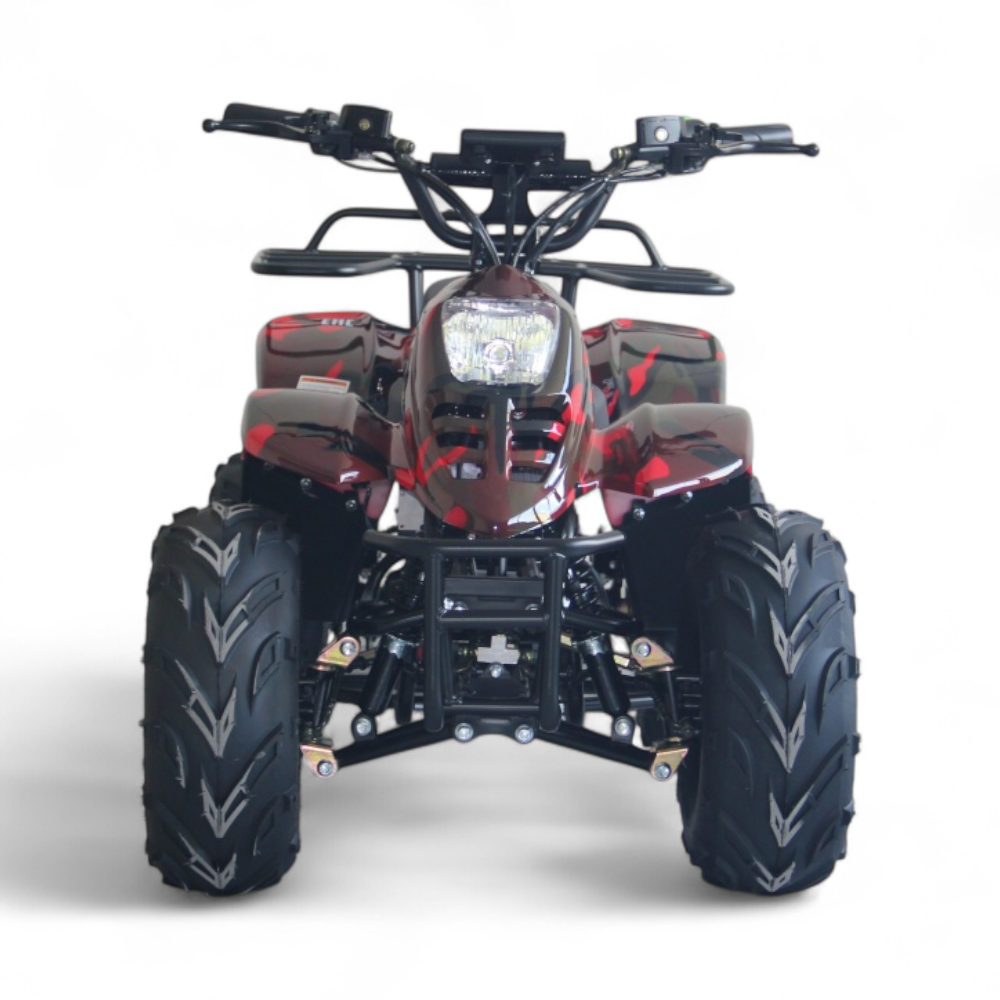 ECO MINI X3 сразу привлекает внимание агрессивным внешним видом и крупными шипованными колёсами. Посадка удобная, руль лёгкий, а ручки прорезинены и комфортны в хвате. Квадроцикл устойчив на неровностях и радует мягким ходом даже по дачным дорожкам или просёлочной тропе. Это тот случай, когда ребёнку не нужно объяснять, как ехать всё интуитивно понятно.