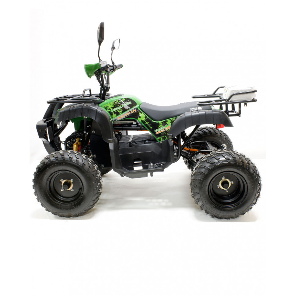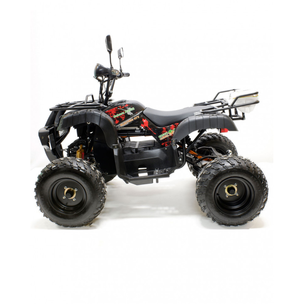 GreenCamel Сахара A3052 оснащен электродвигателем мощностью 3000 Вт и гелиевым/литиевым аккумулятором, заряжающимся за 8 часов. Запас хода на одном заряде — до 50/110/165 км (в зависимости от АКБ, веса райдера и типа дорожного покрытия). Большие пневмоколеса с протектором и пружинная подвеска облегчают прохождение бездорожья. У квадроцикла прочный корпус и удобное мягкое седло. Защитные крылья позволят не запачкать одежду при езде по лужам и грязи.