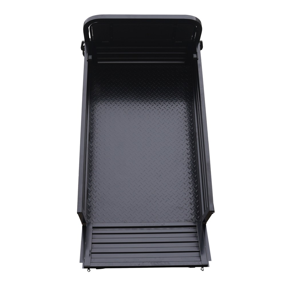 - Кузов: откидные задние и боковые борта на быстросъёмных петлях, насечки внутри — быстрая погрузка и фиксация груза.