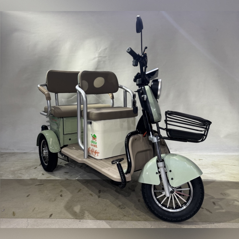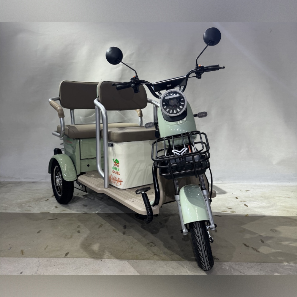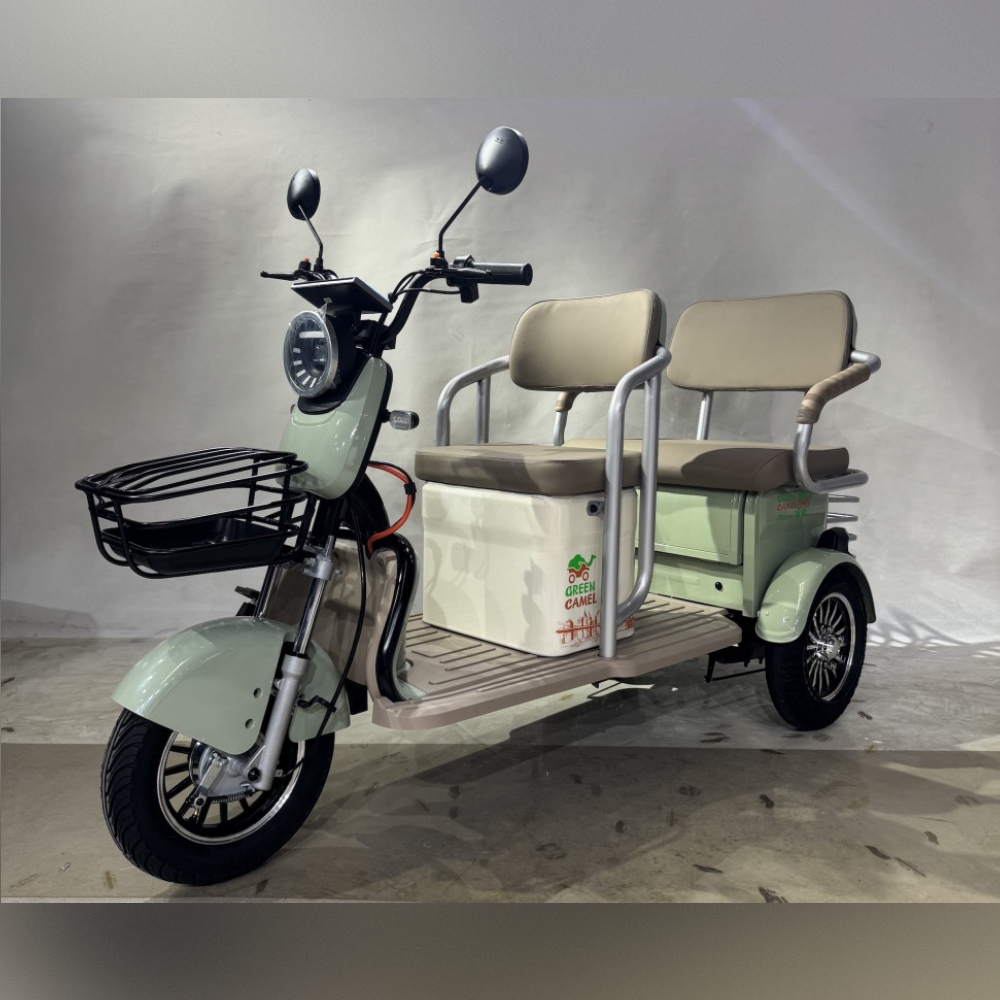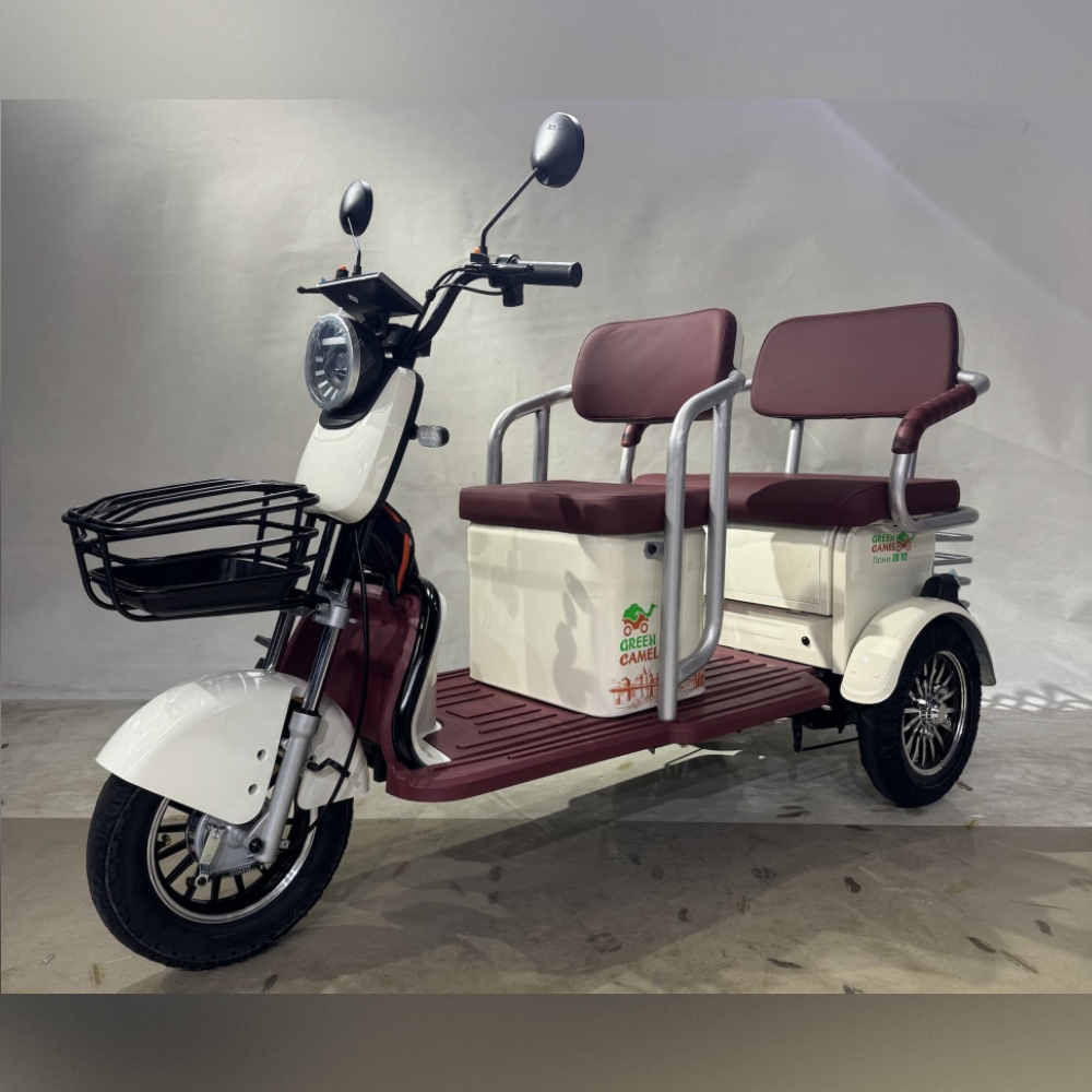 Модель электро трицикла GreenCamel Пони Z8 V2 (72V 1000W) будет интересна как семейный электротранспорт для регулярных поездок, так и коммерческий пассажирский электротранспорт для проката и катания на больших территориях предприятий, парков, отелей и зон отдыха. Трицикл оборудован широкими и комфортными мягкими сиденьями со спинкой для водителя и пассажира. Для небольших размеров у трицикла увеличенное количество багажных отсеков помимо передней и задней корзин под пассажирским сиденье имеется дополнительный багажные отсек. За счёт наличия дифференциалы трицикл имеет плавный ход, а надежный бесщёточный мотор мощностью 1000Вт и напряжением 72В в паре в гелевым SLA аккумулятором ёмкостью 20 Ач способен развивать скорость 45 км/ч и при максимальной загрузке в 150 кг и запасом хода до 50 км (полный запас хода зависит от рельефа, поверхности, режима езды, температуры и т.п.). Учитывая изменения в ПДД с 1.03.2023г., трицикл GreenCamel Пони Z8 оснащен яркой светодиодной фарой с режимами дальнего и ближнего света, ходовыми огнями, поворотниками, стоп-сигналом, зеркалами заднего вида и может перемещаться на выделенной полосе дороги или ДОП при наличии водительского удостоверения и возрасте водителя старше 16 лет. Трицикл Пони Z8 оборудован сигнализацией с брелоком управления, так что вы не будете переживать за сохранность вашего индивидуального транспорта.
